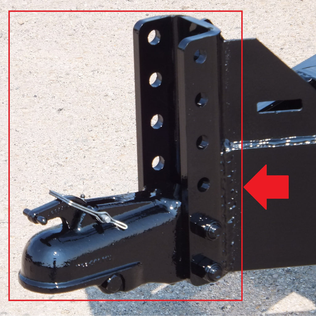 Description: 1 (One) 2-5/16" Adjustable cast coupler with 5-position channel kit. The auto-engage latch makes hooking up easy; it is a one-hand operation. A safety pin and cable are included. This item comes unpainted and can be bolted or welded on.