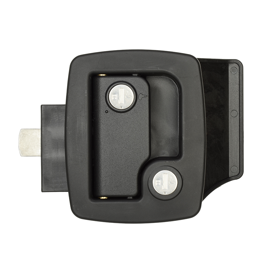 - Description: 1 (One) The Bauer BP-8 series is a standard RV/Horse trailer entry door lock. This door latch has two lock cylinders and fits in a 2-3/4″ x 3-1/4″ cutout. It features Bauer's SCI technology to prevent tampering with lock cylinders. It also is corrosion resistant, lightweight, and UV resistant.