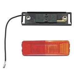Description: 1 (One) 4" x 1" Sealed rectangle 2-bulb designincandescent fender mount clearance/marker light kit - AMBER/RED. The polycarbonate lens is sonically welded to the housing to prevent water entry. Meets DOT, SAE, and FMVSS 108 Standards.