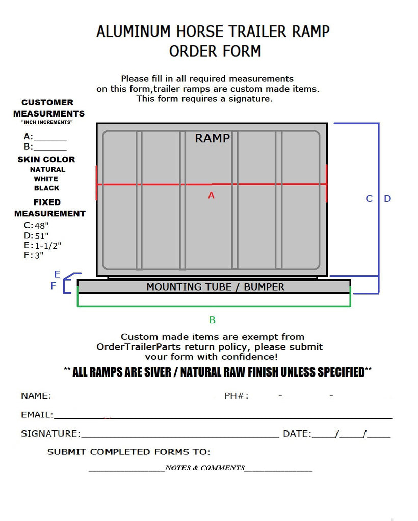 ALUMINUM HORSE TRAILER RAMPS ARE CUSTOM & NON-RETURNABLE,