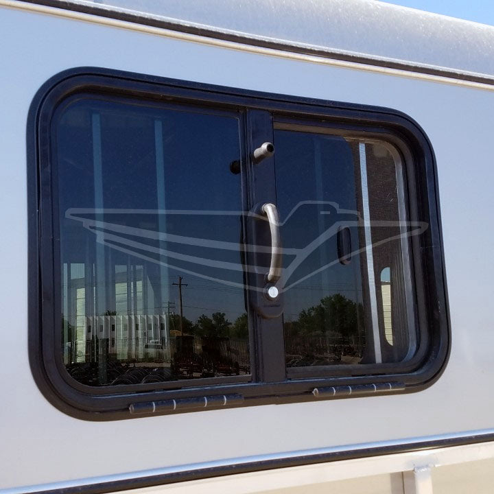OEM: This window is standard on many "Maverick" and "Royal T" trailers featuring Drop-down feed windows.