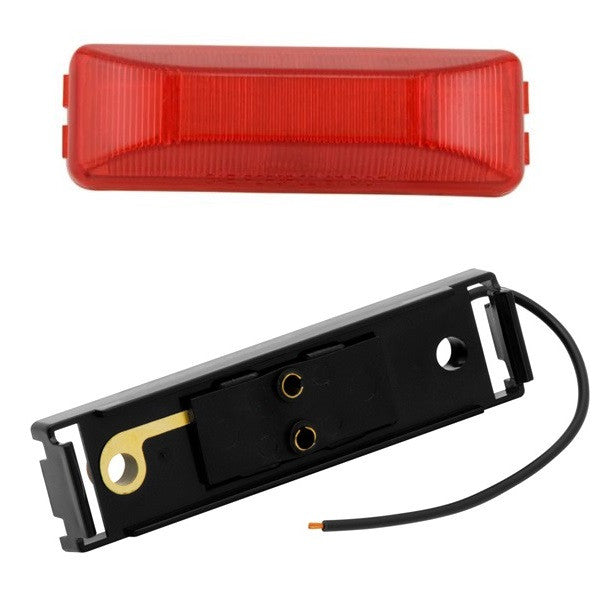 - Description: 1 (One) 4" x 1" Rectangle LED clearance/marker light and base kit- RED (6 diode). Polycarbonate lens is sonically welded to the housing to prevent the entrance of water. Meets DOT, SAE, and FMVSS 108 Standards in any 360-degree position. Light kit comes standard with black plastic mounting bracket Part #: OTP-BRK-31013-B.