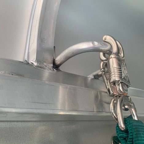 1 (One) 1/2" Aluminum weld on tie ring. Great for inside stall areas as a tie off point.
