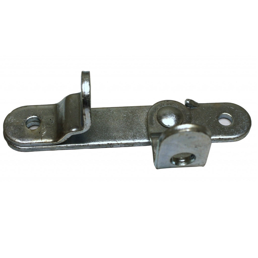 - Description: 1 (One) Cam Latch Hasp, 1 Piece - 1 Rivet. 1/8" thick steel, zinc plated. The bolt centers are 4 3/16" apart. The total length is 5-1/2", and the total width is 1". The Cam Latch Hasp holds up to a 1-1/4" tall cam bar.