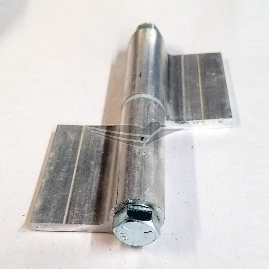 - Description: 1 (One) Heavy-duty aluminum door hinge with 1/2" zinc bolt, bushing, and nylon lock nut. The hinge features a flush flange with no offset. Great for large or heavy doors or many other uses!