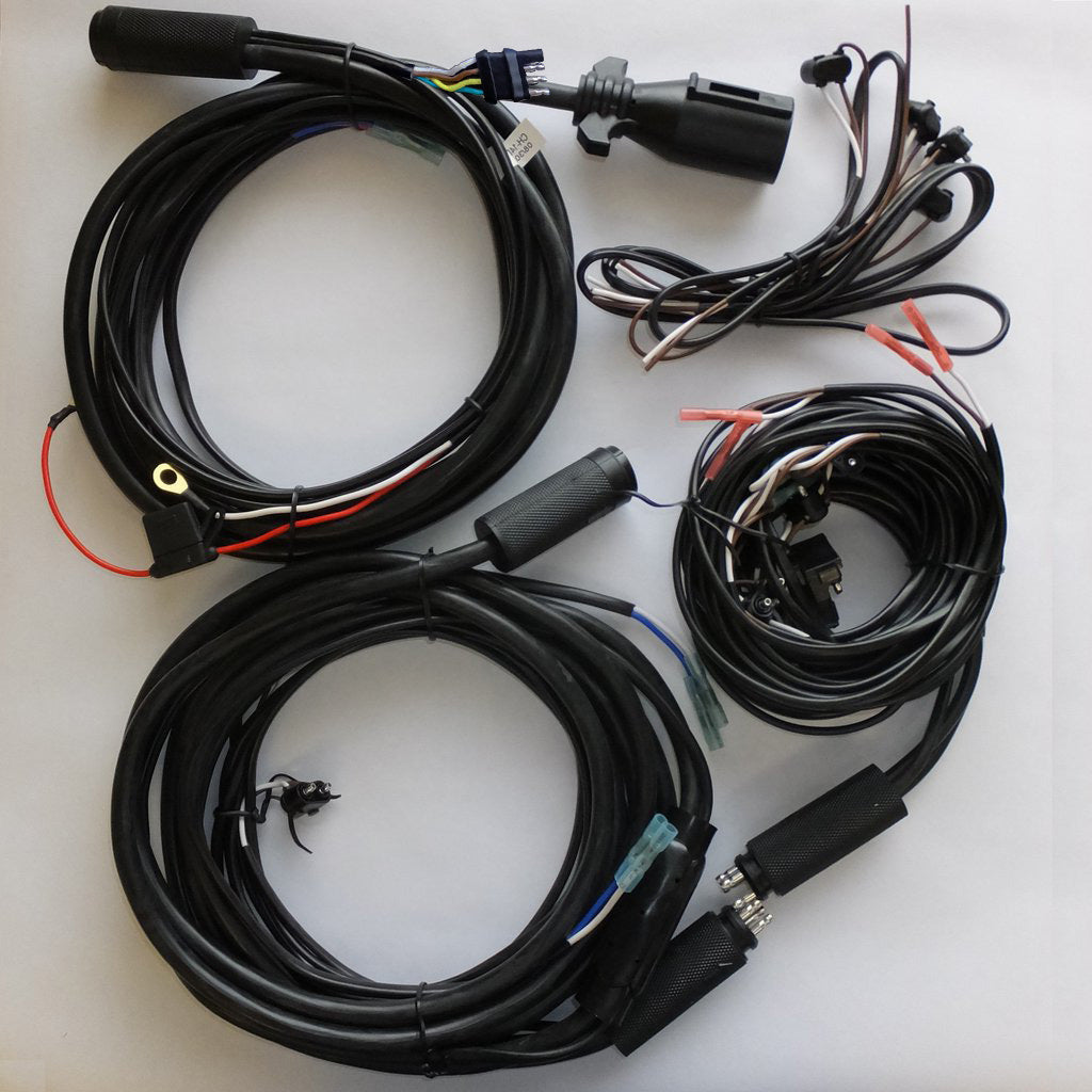 - Description: 1 (One) Wire harness for a 10' dump trailer. This harness has a sealed 7-way RV style plug along with a 4-way flat, common 2-prong clearance and 3-prong tail light pigtails as well as the pre-installed butt connectors needed to assemble.