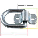 - Description: 1 (One) Zinc plated, bolt on style d-ring. 1/2" Ring Diameter. Measures 2-1/2" x 2-3/8" I.D. with 2" Hole