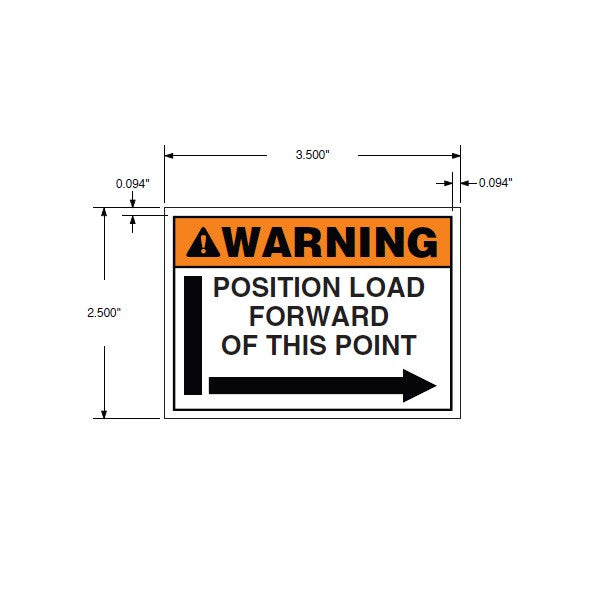 - Description: 1 ( One) 3.5"x2.5" Decal "WARNING - Position load forward of this point." (Passenger Side)