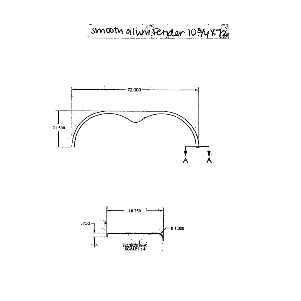 - Description: 1 (One) 10-3/4" x 72" Tandem axle teardrop .090 aluminum fender.
