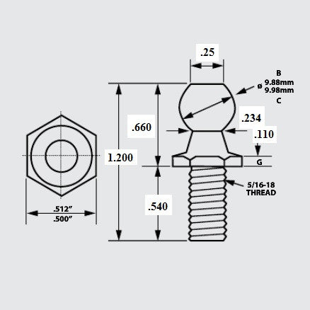• Description: 1 (One) Gas spring/shock zinc plated 10mm ball stud, with 5/16"-18 thread.