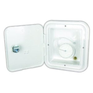 Description: 1 (One) Gravity Water Hatch by JR Products JFE12-A (White). Accepts either 1-1/4” or 1-3/8” water fill hose - Has a tank vent connection - Direct OEM replacement - UV & impact resistant - Resistant to road salts & acids. Comes with one key.
