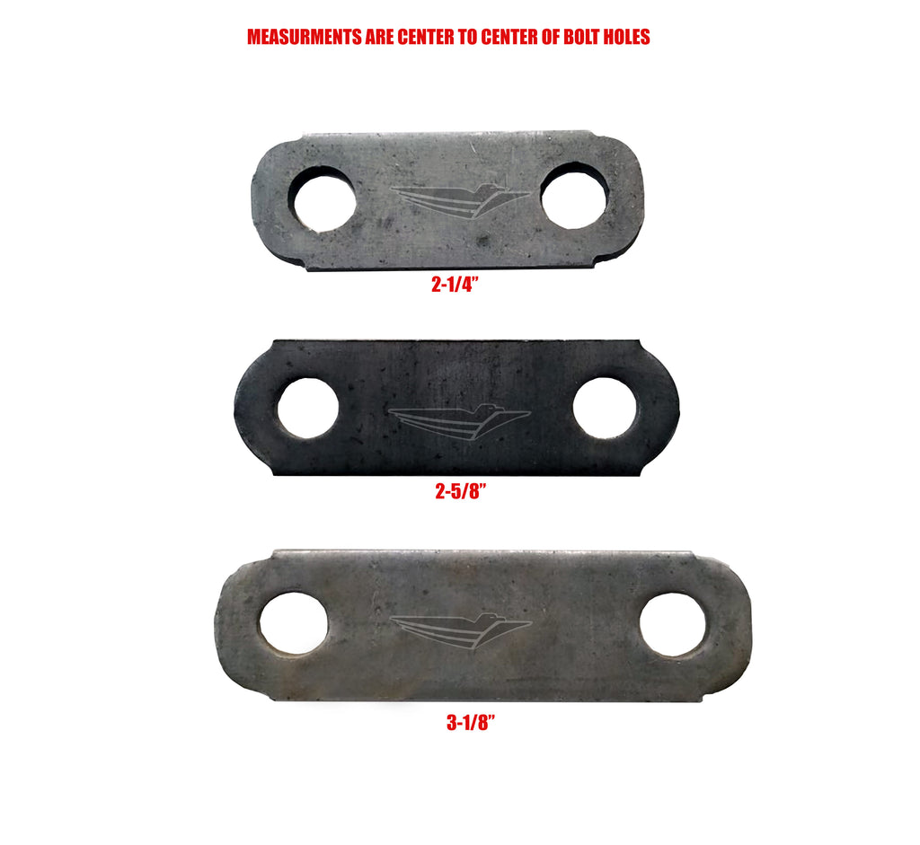 - Description: 1 (One) Shackle strap (link) for suspension systems using double-eye leaf springs and 9/16" Spring bolts. Straps are measured from hole to hole and are 1-1/4" tall. All straps are 3/16" thick.
