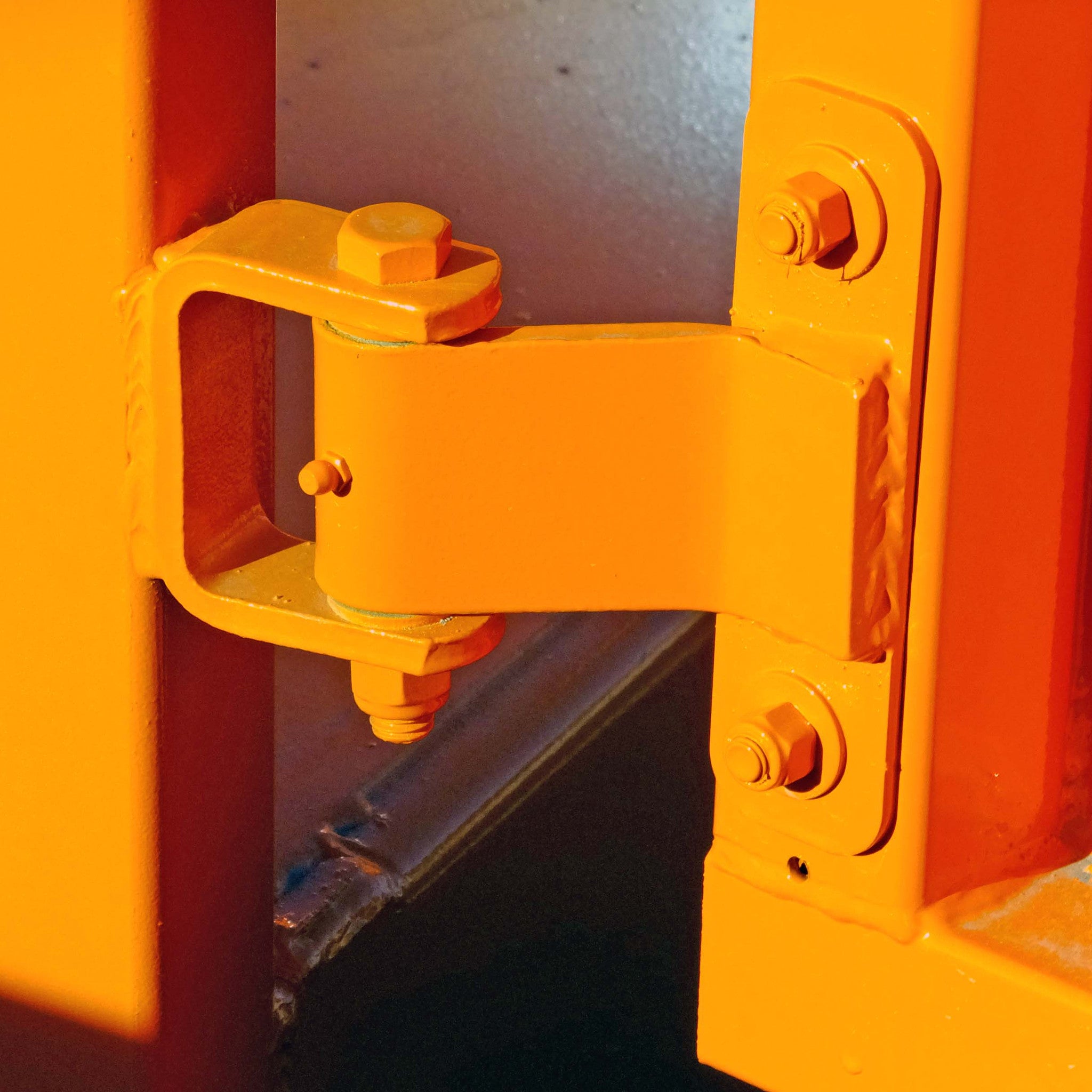 • Description: 1 (One) Formed steel strap hinge with grease zerk and bolt-on door bracket. This will be painted Home Depot Orange.