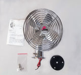- Description: 1 (One) Chrome 2 Speed 12 volt electric fan. Help get the air moving in your trailer and keep your livestock cool on those hot days! Unit comes prewired with a switch for low and high speed functions, and features a sturdy adjustable base. Includes mounting hardware, and instructions for installation.
