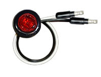 Description: 1 (One) 3/4" Round LED clearance/marker light with male bullet connectors - RED (3 Diodes). Sealed polycarbonate lens has epoxy filling to prevent water from entering. Light comes standard with mounting grommet 8" wire leads and .180 male bullet connectors. Light meets PC rating, DOT, SAE, and FMVSS 108 standards in any 360-degree position.