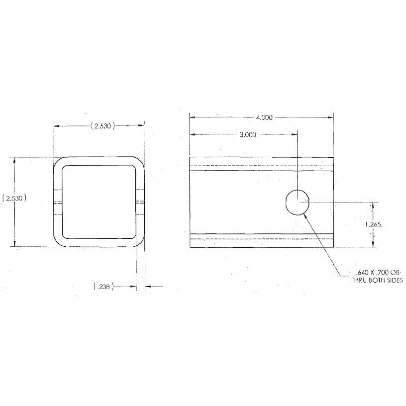1 (One) Stabilizer Leg Receiver Tube - 4". Part comes unpainted and may require welding depending on your application.