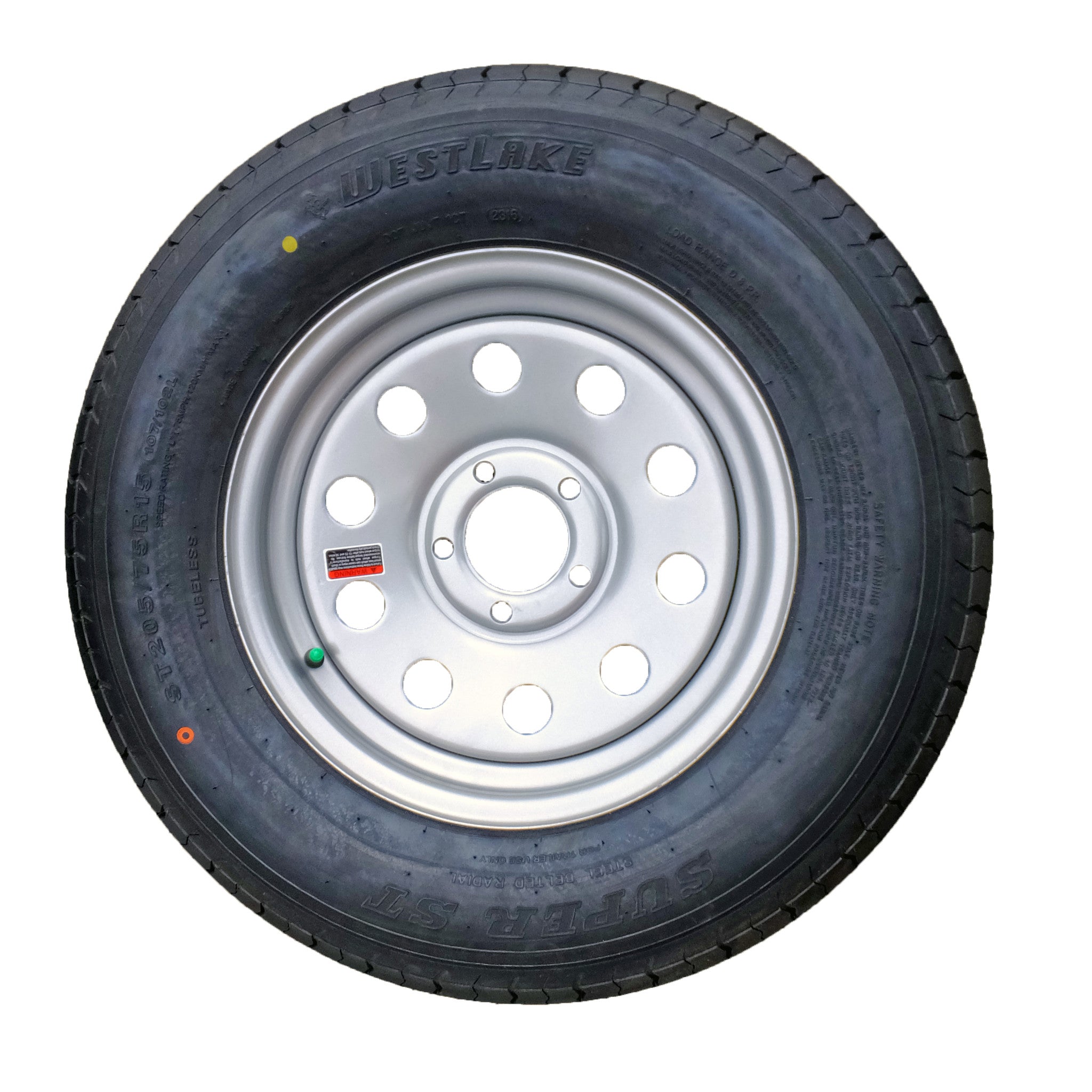 - Description: 1 (One) Westlake ST205/75R15 load range D premium steel belted radial 8-ply tire on silver or black powder coated 5-hole wheel. This assembly comes mounted and inflated.